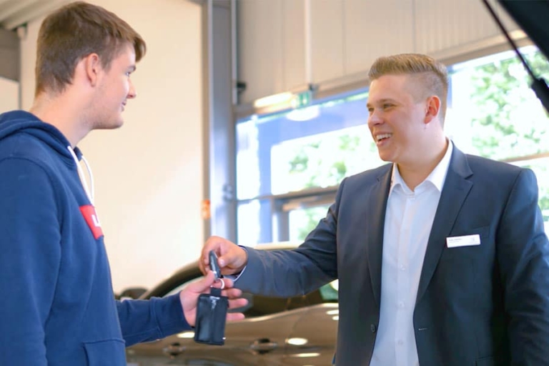 Mit der Ausbildung als Automobilkauffrau oder Automobilkaufmann bringst du deine Karriere in der Automobilbranche ins Rollen. Nach dem Abschluss der Ausbildung kannst du als Gesellin oder Geselle in unterschiedlichen Betrieben arbeiten - und dich durch fachliche oder betriebswirtschaftliche Fortbildungen weiter spezialisieren.