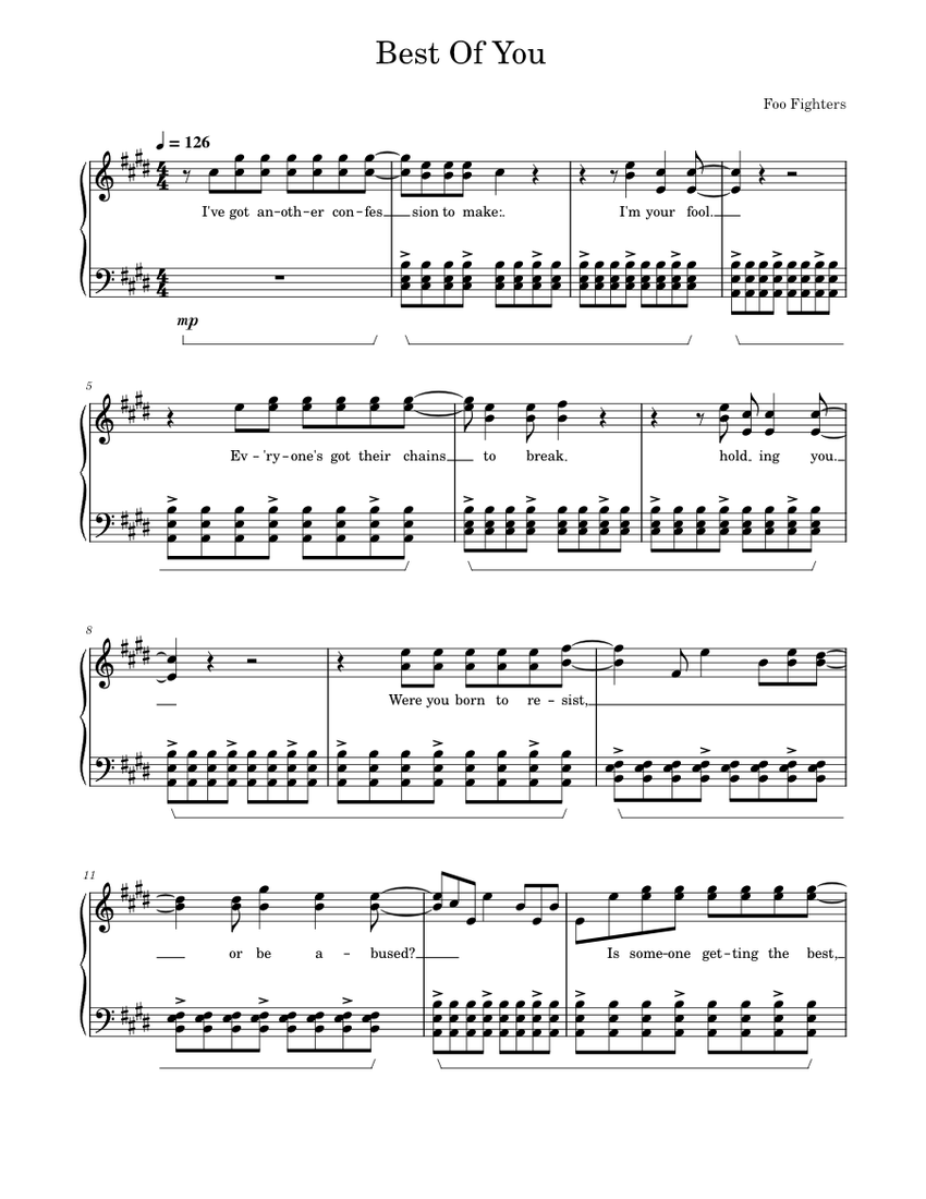 Best Of You Foo Fighters Sheet music for Piano Download free in PDF or MIDI