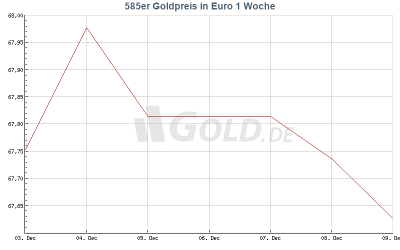 Goldpreis 585: Auf dieser Seite finden Sie stets den aktuellen Goldpreis 585 pro Gramm in Euro und weiteren Währungen. 585 Goldpreis — Allgemeines zu 14 Karat Gold. Die Zahl 585 bedeutet, 585 Teile von 1000 in der Legierung bestehen aus reinem Gold 999, der Feingoldanteil in der Legierung beträgt somit 58,5 %.