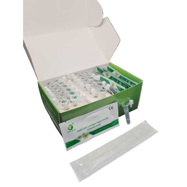 Mit dem SARS-CoV-2-Antigen-Schnelltestkit von Green Spring können Laien selbstständig einen sicheren Corona-Test durchführen. Der immunchromatographische Test für den schnellen qualitativen Nachweis von SARS-CoV-2-Nukleokapsidprotein-Antigenen in menschlichem Nasenabstrich weist mit seiner hohen Spezifität von 99,99% eine Infektion nach.