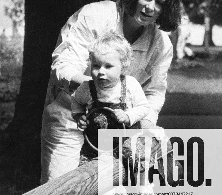 Christina Rau , Ehefrau von Johannes Rau , SPD , mit ihrem Sohn Philip Immanuel auf einem Spielplatz