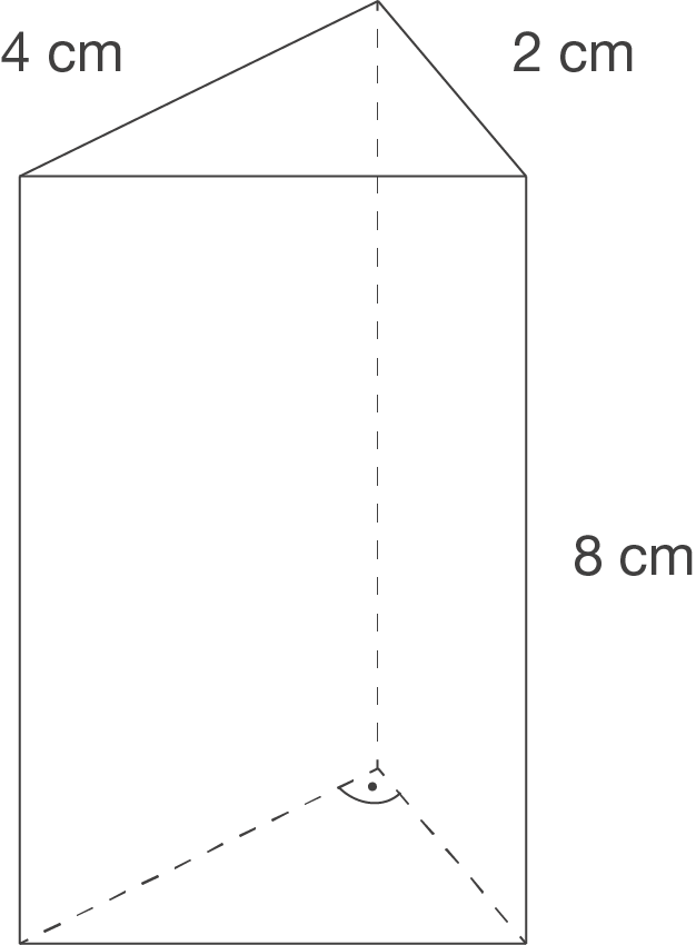 Aufgabe 2: Das abgebildete Prisma wird durch einen Schnitt in zwei Dreiecksprismen zerlegt. Berechne das Volumen sowie die Oberfläche eines der Teilstücke. (Maße in cm) Aufgabe 3: Ein Prisma aus Glas hat als Grund- und Deckfläche ein gleichschenklig-rechtwinkliges Dreieck mit der Kathetenlänge 2,5 cm. Das Prisma ist 4 cm hoch. Berechne.