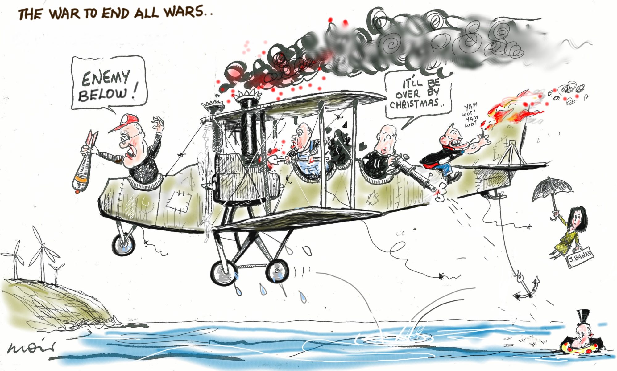 The war to end war. " The war to end war " (also " The war to end all wars "; [1] originally from the 1914 book The War That Will End War by H. G. Wells) is a term for the First World War of 1914-1918. Originally an idealistic slogan, it is now mainly used sardonically, [2] since not only was the First World War not history's final war, but.